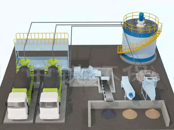 中銳環(huán)保推出新型混凝土零排放回收系統(tǒng)設(shè)備,設(shè)備結(jié)構(gòu)緊湊,分離能力大,分離精細(xì)度高,真正實(shí)現(xiàn)廢渣廢水零排放。不建地下的沉淀池、漿水池,不配壓濾設(shè)備,整套系統(tǒng)運(yùn)行中,沒有清淤排於環(huán)節(jié),不產(chǎn)生一粒廢渣,回收的砂、石、漿水99%全部應(yīng)用于混凝土生產(chǎn)中。